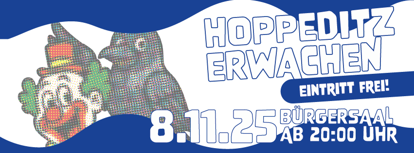 Am 8.11.2025 geht's endlich wieder los. Wir laden Euch zum offiziellen Hoppeditz Erwachen im Bürgersaal Bracht ein.